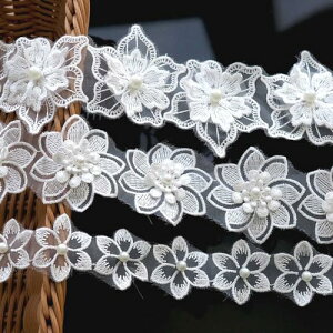 ■商品説明■ 3種セット 人工真珠で飾られた花モチーフ付刺繍入りレース生地装飾 花柄様 各1m合計3m DIY 裁縫 ギフト包装 カーテン装飾 お人形の衣裳作り ヘアクリップ作りなどに最適 (ホワイト)...