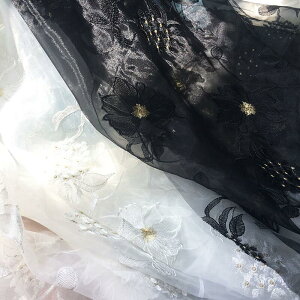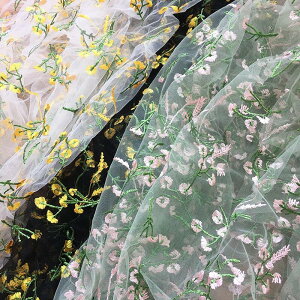 長さ180cm 「美しい外観」この生地は、軽やかなメッシュ生地をベースに、立体的な花柄の刺繍が施されて、花の形や色がリアルに再現されています。生地全体に散りばめられた花柄が、華やか