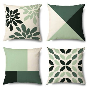 4枚セット おしゃれ 可愛い 柄 綿とリネン 亜麻 ソファー用クッションカバー ソファ背当て 装飾枕カバー 座布団カバー(グリーン, 50x50) 【素材】高品質な綿麻生地です。シワになりにくく、色...