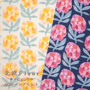 北欧フラワー2 綿麻キャンバス cotton85% linen15% 中厚手の肌触りの良い綿麻キャンバスです。 バッグ、インテリアファブリックにも最適な生地です! 【綿麻生地の特徴】 綿は伸びにくく丈夫であり...