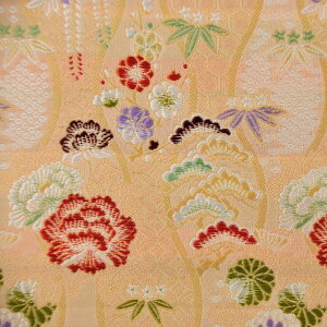 御所車の典雅で美しい文様の金襴生地 御所車は、平安時代に御所の周辺で皇族や貴族に使われる乗り物だった牛車の別称で、「玉の輿に乗れますように」との願いを込めたものです。 着物の帯や座布団ケース掛け軸、日本人形の衣装やつま