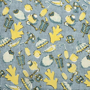 チングのような生地です。ゴールド・シルバーのプリント部分は若干のゴワつき(かたさ)を感じます。光に当てると反対側が透けて見える程度のやや薄手の生地で、通気性があります。 【規格】素材 コットン100%/生地巾...