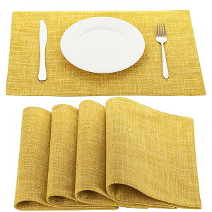 ランチョンマット布製 綿麻 マット 二層生地縫製 無地 和風 柔軟性 断熱 滑り止め お手入れ簡単 丸洗い キッチン 家庭用 レストラン用 4枚セット(イエロー)ブランド色イエローモデル商品説明【商品...