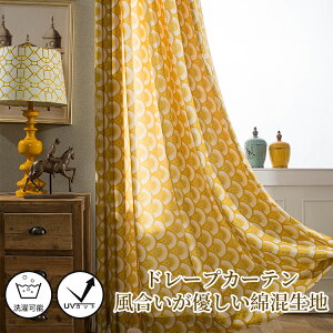 オーダーカーテン 幾何柄 北欧 送料無料 イエロー