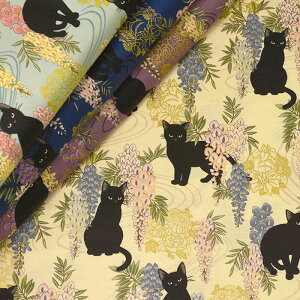 綿100% 幅110cm 手芸 布 布地 猫mini 和柄 ネコ柄 黒猫 和モダン コスモテキスタイル