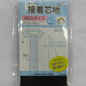 (税込) 黒色 アイロン接着芯地(パック入り) 織芯タイプ(布)薄手(ローン・ブロード・シーチング生地に最適) 薄手のブラウスの襟・前立て・カフス・などに 洗濯に強く表地によくなじみ、伸び・型崩