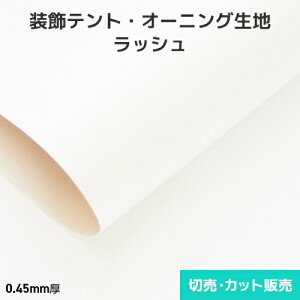 装飾テント・オーニング生地のラッシュ 光触媒機能により汚れを除去する「セルフリニューアルシステム」採用の生地です。 酸化チタン光触媒により表面層を分解し、汚れも共に除去する独自の防汚性能を有しています。 ※分解した表そう