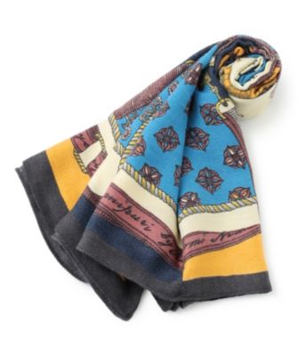 manipuriのスカーフ柄がプリントされた色鮮やかなストール■デザイン・素材インド製のウール60%、シルク40%の特注生地を使用しております。プリントの加工はシルクスカーフのプリント技法と同様にイン...