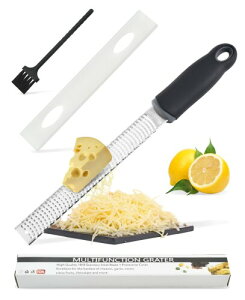 おろし器 ステンレス製 おろし金 レモン パルメザンチーズ 生姜 ニンニク 野菜 果物用 キッチンツール 食器洗い機対応 フードグレーター チーズ卸器 多機能 シトラス 大根 チョコレート フルーツ用ブラシ付き...