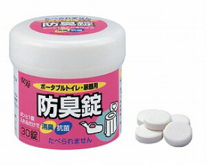 【商品説明】 ・30錠入 ・手軽に使える発泡タイプの防臭錠です。 ・ポータブルトイレのバケツにポンと一錠入れるだけで ・12時間防臭効果を発揮します 【仕 様】 ●主成分/香料、有機酸、炭酸塩、陰イオン界面活性剤 ●生産国/日本