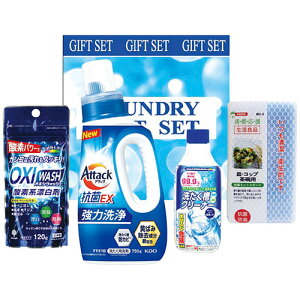 ランドリーバラエティギフト洗濯洗剤のお得なバラエティセットメーカー品番 : LV-3B内容物 : 750gアタック抗菌EX洗剤・400ml洗濯槽クリーナー各1本・120gOXIWASH酸素系漂白剤・食器用スポンジ各1個・スポンジ賞味期...