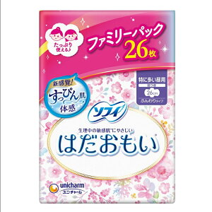 ソフィはだおもい 特に多い昼用260羽つき 内容量 26枚 特徴 ◆たっぷり使える ◆新感覚!すっぴん肌体感 ◆ふんわりタイプ