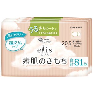 スタイル:羽なし 20.5cm◆商品名:エリス 素肌のきもち 超スリム 羽なし 20.5cm(多い昼~ふつうの日用)81枚【まとめ買い】 【ネット限定】肌あたりやわらかなうるさらシート:肌とのこすれを...
