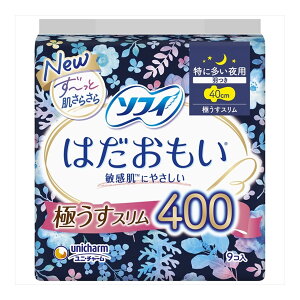 【ソフィ はだおもい 極うすスリム 400 特に多い夜用 生理用品 ナプキンの商品詳細】 ●はだおもいは、生理中の敏感肌にやさしいナプキンです。 ●その理由は、長時間吸収力が持続して、特に多い日の夜でも...