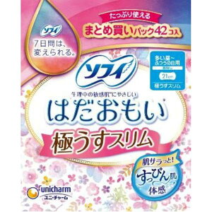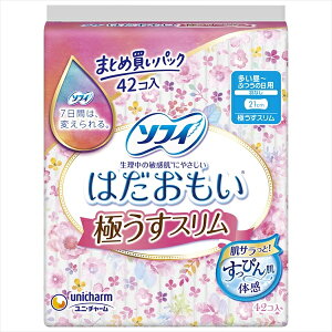 内容量42枚商品説明はだおもいは、生理中の敏感肌にやさしいナプキンです。その理由は、長時間吸収力が持続して、交換まですっぴんのようなサラサラ感がつづくからです。発売販売元ユニ・チャーム株式会社お客様相談ダイヤル電話・・