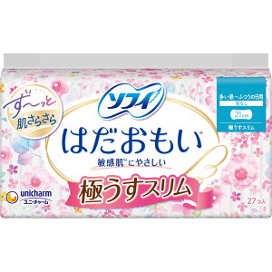 生理中の敏感肌にやさしい 長さ(cm)17.5 特徴●吸収後も、肌サラサラつづく!はだおもい極うすスリム●しっかり吸収、肌サラサラつづく●ふんわりやさしいつけ心地●裏面は、ナチュラルフラワーデザイン 用途軽い日用 商品説明 内容量34...