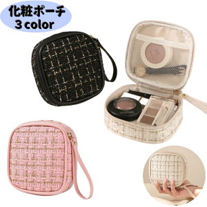 化粧ポーチメイクポーチポーチ小さめコンパクト大容量層間設計手提げ収納小物入れレディースかわいいミニポーチサニタリーポーチマルチポーチ韓国風おしゃれ可愛いチェック柄口紅/カード/カーキ/小銭/小さな鏡なの入れ...