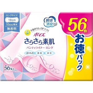 ポイズ素肌ライナーロングは無香料&ロングサイズで安心吸収。お徳用56枚入りで毎日の尿モレやおりもの対策に最適!