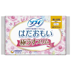 生理中の敏感肌にやさしい 長さ(cm)17.5 特徴●吸収後も、肌サラサラつづく!はだおもい極うすスリム●しっかり吸収、肌サラサラつづく●ふんわりやさしいつけ心地●裏面は、ナチュラルフラワーデザイン 用途軽い日用 商品説明 内容量34...