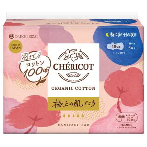 シェリコット オーガニックコットン ナプキン 特に多い日の夜用 40cm 羽つき/生理用品/【発売元、製造元、輸入元又は販売元】第一衛材/・単品JAN:4904601138703/【シェリコット オーガニックコットン...