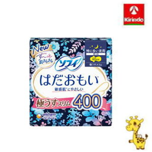 花王 ロリエ しあわせ素肌 超スリムタイプ 特に多い夜用 400 羽つき (9個) 40cm 生理用ナプキン 医薬部外品 JANコード:4901301354563