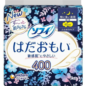 商品名:ユニ・チャーム ソフィ はだおもい 400 特に多い夜用 羽つき 40cm ふんわりタイプ 7コ入内容量:7コ入JANコード:4903111329472発売元、製造元、輸入元又は販売元:ユニ・...