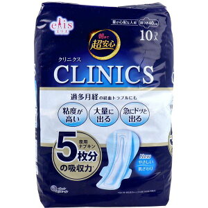 《セット販売》 大王製紙 エリス 朝まで超安心 クリニクス 量が心配な人用 羽つき 40cm (10枚)×6個セット 生理用ナプキン 夜用 【医薬部外品】