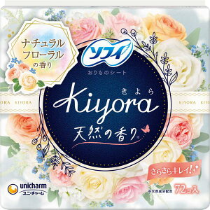 量は変更となる場合があります。ご了承ください。 商品名 ソフィ Kiyora フレグランス ナチュラルフローラルの香り 内容量 72枚/サイズ:14cm 商品説明 ◆天然成分配合の香りつづくやさしいフ