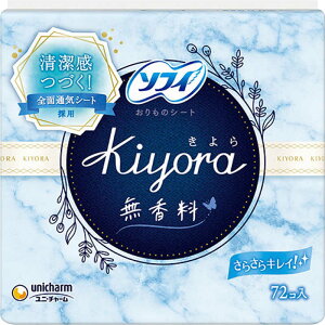 区分:医薬部外品 ソフィ Kiyora(きよら) 無香料 72枚ブランド:ソフィ販売・製造元:ユニ・チャーム毎日清潔・快適に過ごせるおりものシートです。全面通気性バックシート使用、エンボス立体形状により...
