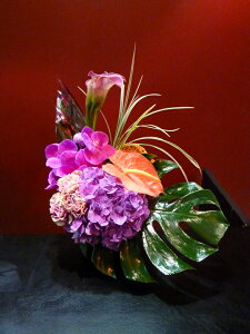 サイズ:横25~40cm ×高さ50~100cm (サイズは目安です。花材や商品で異なります。) 器は変更になる場合がございます。 花材:画像を元に色、イメージでお作り致します。 雰囲気は崩さず制作いたしますが、 入荷状況で花材変更が...