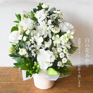 アレンジメント 花材 弔事・仏花に適したお花 アレンジサイズ 高さ約30〜35cm、幅24cm、奥行き20cm程度 お供え専用のアレンジメントです。 仏花・法要からお盆・お彼岸・ペットのお悔やみなどに...