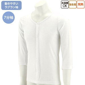 LL対象:大人 男性 メンズ 紳士タイプ:介護用 前あき ホックボタン 肌着 7分袖 インナー シャツ 下着 ホワイト 白