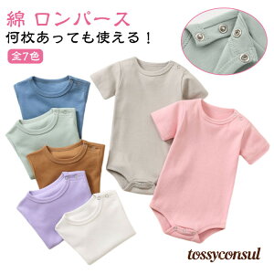 【ロンパース】【綿】【全7色】何枚あっても使える!通気性の良いコットン素材使用で汗をかきやすい季節でも安心!程よくしっかりした生地です 股部分にボタンが3つ付いています。オムツ替えも簡単で、はだける心配もありません。綿