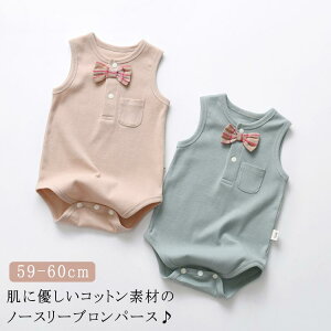 肌に優しいコットン素材のノースリーブロンパース♪1枚でも重ね着でも楽しめて着まわし力抜群です。股下スナップボタン留めでお着替えカンタンご出産準備やお祝いのギフトにもぜひ! サイズ 59cm 66cm 80cm 90cm サイズについて...