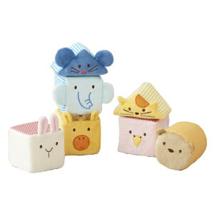 〜はじめてのつみきや、はじめての贈り物にピッタリ。やわらかく肌触りのよい布製のつみき〜 ●ひとつひとつのつみきから音が鳴るのでラトルとして単体で遊んだり、いないいないばあやお家を作ってごっこ遊び、着せ替え遊びなどが楽し
