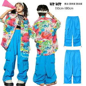 キッズ ダンス 青色 カーゴパンツ キッズ ダンス衣装 カジュアルパンツ 男の子 女の子 ロングパンツ ヒッフポッフ ジャズダンス 韓国 kpop 演出服 発表会 団体服 応援団 原宿系 かっこいい パンツ...