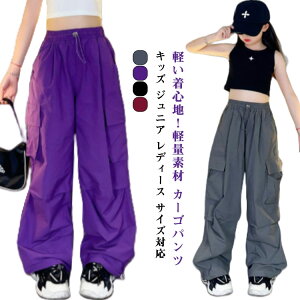 軽い着心地!軽量素材 カーゴパンツキッズ ジュニア レディース サイズ対応ヒップホップファッションの必需品ダボっとゆるいシルエットがかっこいいカーゴパンツ素材は、丈夫なポリエステル素材でシャカシャカ感があります。ダンス