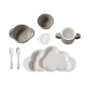 【特徴】大きなお皿、おちゃわん、スープわん、コップ等キッズが使える食器セットです。 ごはんを集めてすくいやすい設計のくもプレート。洋食の時は高台にストッパーを装着して、すべらない様に。 和食の時には、みみを両手でしっか