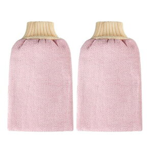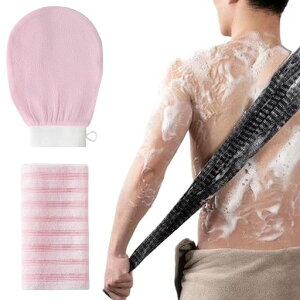 【製品仕様】セットにはボディータオル1つと垢擦りミトン1つが含まれます。タオルのサイズは105*25cm、重量約50g。お風呂手袋のサイズは14*21cm、重量約20gです。この角質除去タオルはピンクとブラックの2色から選べます。バス...