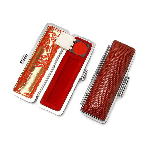 【月間優良ショップ受賞店】【あす楽配達】本蜥蜴(トカゲ)革の高級特選はんこケース/内張りは縁起の良い朱竹柄/男性・女性/簡易朱肉付き