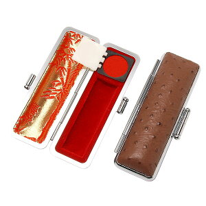 【月間優良ショップ受賞店】【あす楽配達】本オーストリッチ革の高級特選はんこケース/内張りは縁起の良い朱竹柄/男性・女性/簡易朱肉付き