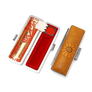 【月間優良ショップ受賞店】【あす楽配達】本牛革の高級部位のみ使用はんこケース/内張りは縁起の良い朱竹柄/男性・女性/簡易朱肉付き