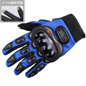 全季節対応オールシーズン バイクグローブ ライディンググローブ 転倒時の危険から手をしっかり守る安心の高機能なバイク用グローブです。 メッシュで通気性抜群&立体成型で握りやすさを確保しながらもしっかりプロテクターを配置! さらにスマ
