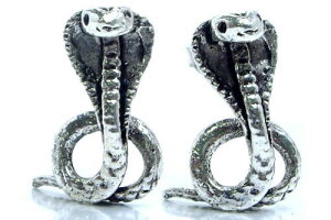 とぐろを巻いたコブラを大胆な大きさで立体的にデザインしたシルバーピアス。質感までリアルに再現された蛇アクセサリーは、ヘビ好きにはたまらない逸品でしょう。圧倒的な存在感を放つ大きさのコブラは見る人を威嚇するシルバーアク