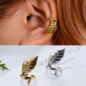 シルバーメッキとゴールドメッキしたとげのある蔦に葉を1枚デザインした綺麗なイヤーカフ。おしゃれプレーンなイヤーカフは男の人からも女の人からも人気のアクセサリー。 まるでリングピアスやフープピアスを着けているように見える