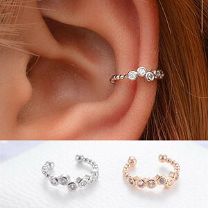 シルバーメッキとゴールドメッキしたイヤーカフにジルコニア6個並べた綺麗なイヤリング。おしゃれプレーンなイヤーカフは男の人からも女の人からも人気のアクセサリー。 まるでリングピアスやフープピアスを着けているように見える人