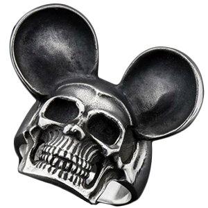 艶消しのマットなアンテークシルバー調に仕上げたサージカルステンレス316L製の大きな耳が印象的なネズミをモチーフにしたオモシロ不気味なステンレスリング。 動物アニマルモチーフとドクロモチーフは男の人からも女の人からも人気の