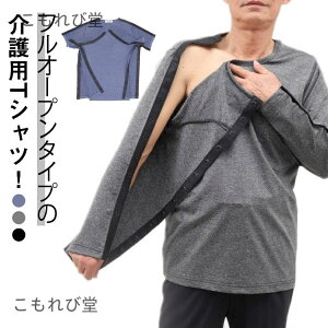 フルオープンタイプの介護用tシャツ!袖・肩・脇の下にスナップボタンが付いているので着脱が簡単です。オープンタイプなので体の不自由な方にも着せやすく常に体を清潔に保つための脱着に最適です♪フルオープンタイプなので点滴時や