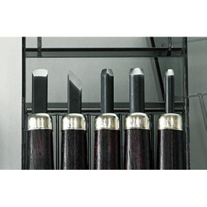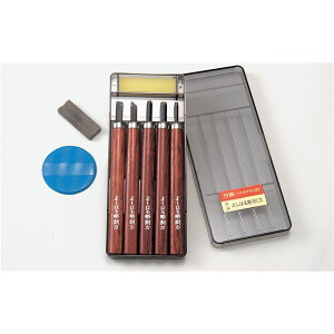 刃は高級つけがね製(二層鋼)ですから、全鋼のモノよりはるかによく切れ、長持ちします。 また砥ぎ直しも容易です木柄(ブビンガ材)は、楕円型で使いやすく、汚れにくく頑丈です セット内容 6本組(平刃、切出刀、三角刀、中太刃、