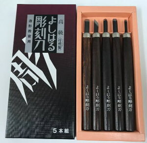 切り出し刀は専用キャップ付きです。 【全鋼(ぜんこう)製刃について】刃は均一な硬度とねばりを持たせてあり、よく切れるよしはる彫刻刀です。また、折れたり曲がったりしない...